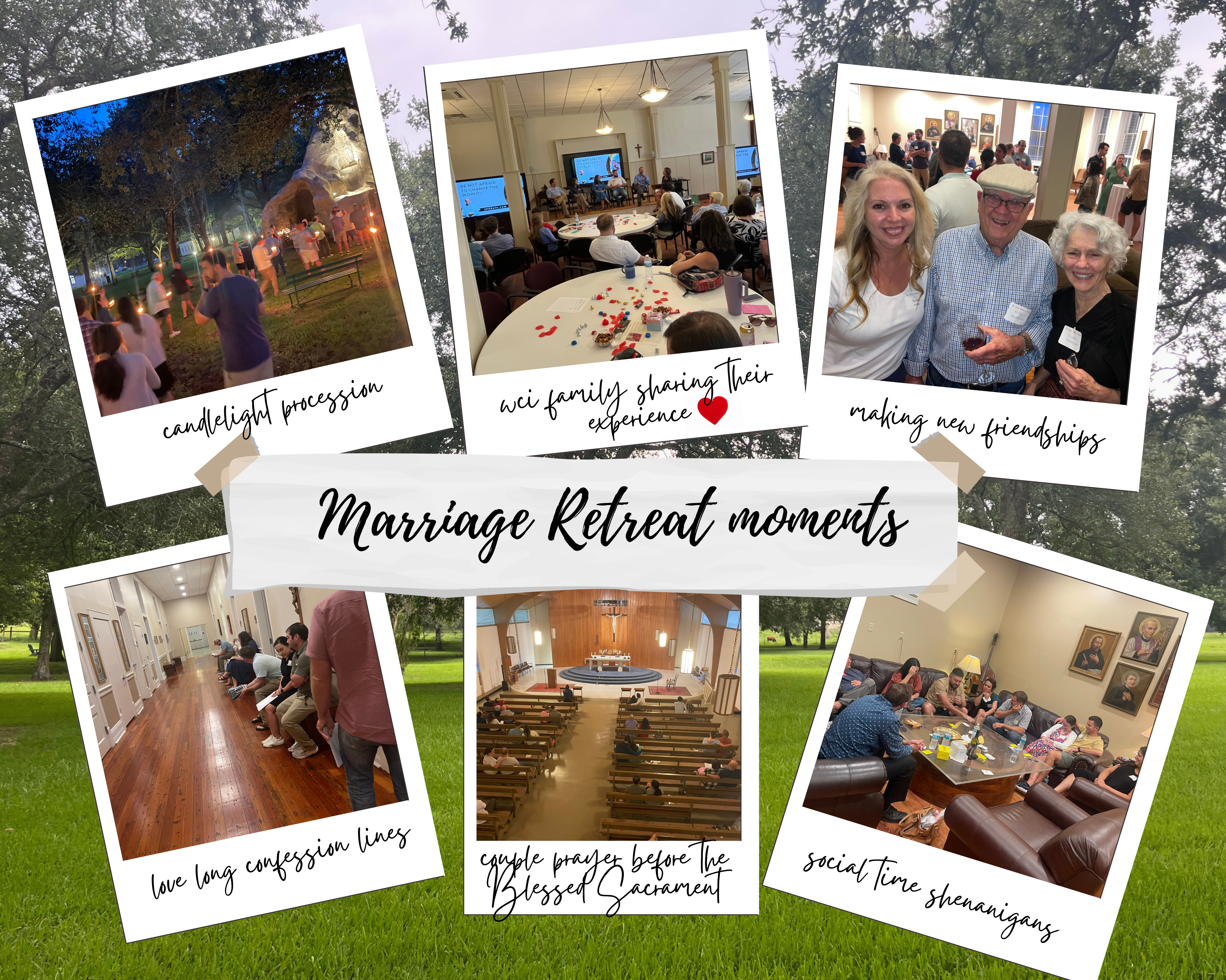 Even despite the almost unbearable mid-July heat of south Louisiana, we had a beautiful weekend getaway experience at the Two Souls United in Christ retreat in Grand Coteau, growing closer to Jesus and our spouses. The highlight of the retreat for Sam and me was the Couples’ Prayer before the Blessed Sacrament on that second night. It was one of the most powerful experiences of conjugal spirituality we have ever had, and the fruit of the Holy Spirit was tangible. Followed by that unifying experience was an expected invitation to participate in the retreat center’s nightly ‘Lourdes Procession.’ We processed by candlelight to a huge replica of Massabielle – the Lourdes grotto – where we knelt in prayer and offered our own silent intentions to our Lord and our Lady together with many other retreatants there that weekend. It is difficult to put into words just how powerful these encounters in prayer were – especially entering into them as a community. We were also blessed to have our entire MCG in attendance on the retreat.